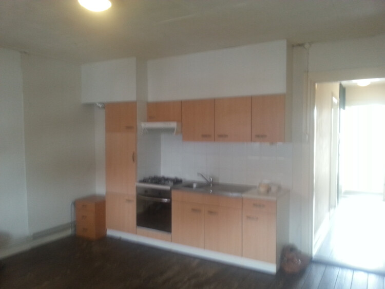 Huiskamer en keuken in een ruimte van 22 m2. kleine slaapkamer, en douche en toilet. balkon van plus minus 24 m2.Het gehele appartement heeft een houten vloer. Op loopafstand van het ziekenhuis en station.